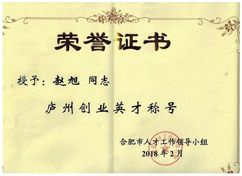 廬州英才證書